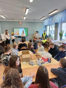 -Logistyka – uczniowie wcielili się w rolę specjalistów zarządzających magazynem i dostawami. Pod okiem nauczyciela przedmiotów zawodowych młodzież pracowała na stanowiskach wyposażonych w aktualne materiały szkoleniowe oraz nowoczesne narzędzia informatyczne, symulując rzeczywiste procesy magazynowe. Dzięki ćwiczeniom w środowisku zbliżonym do realiów branży logistycznej uczniowie mogli zrozumieć, jak ważna jest precyzja, organizacja pracy oraz efektywna komunikacja w tym zawodzie.