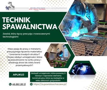Technik Spawalnictwa to zawód, który daje Ci możliwość pracy w najbardziej wymagających i zaawansowanych dziedzinach przemysłowych. Zdobądź umiejętności, które pozwolą Ci tworzyć i naprawiać elementy konstrukcyjne, które są niezbędne w wielu sektorach gospodarki!