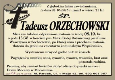 Z ogromnym smutkiem informujemy o śmierci śp. Tadeusza Orzechowskiego